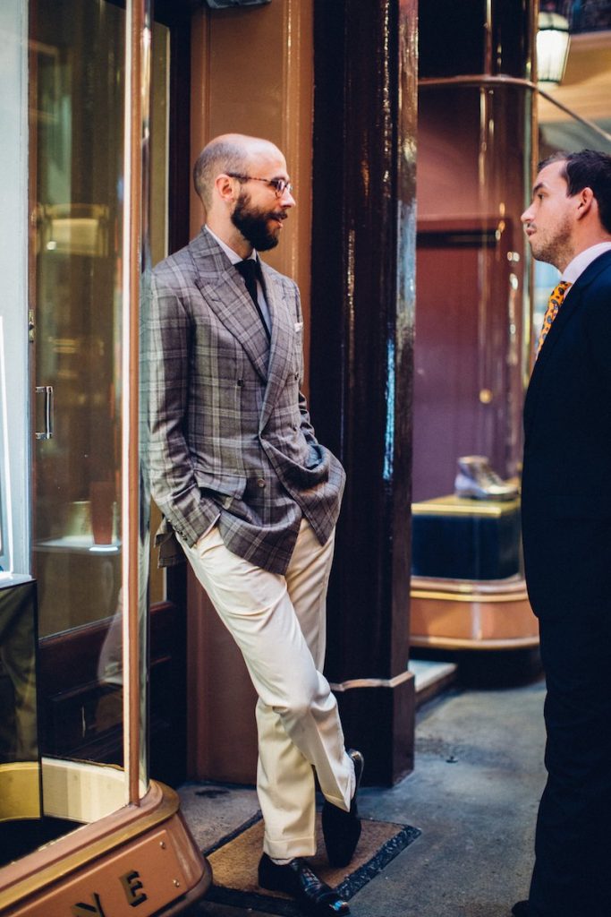 O mais fácil de todos para combinar com calcás de cor diferente é o blazer cinza de lã tweed, principalmente com padronagem espinha de peixe ou donegal. É uma escolha que só funciona no inverno, mas o princípio pode ser adapatado para o nosso clima na forma do linho ou misturas de linho e seda, que também podem ter esse aspecto texturizado do tweed.
